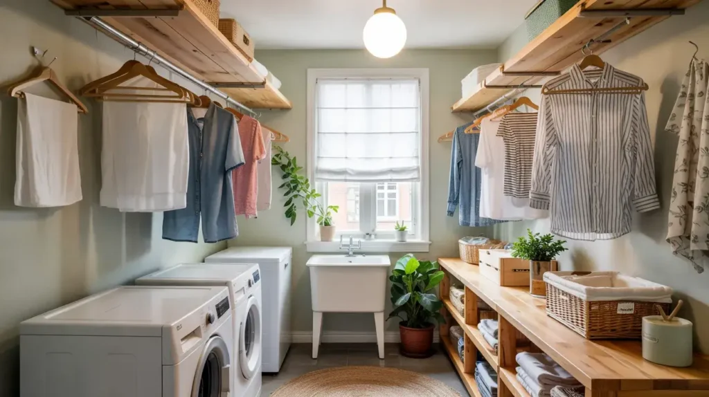 - Retractable clotheslines: Extend across the room when needed