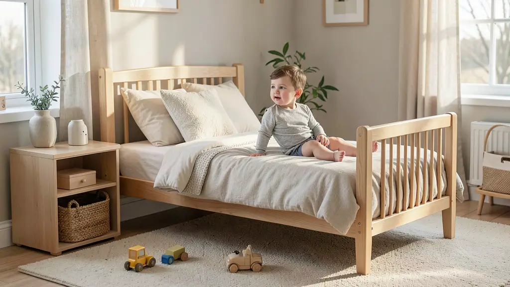 • Floor bed or very low bed frame so toddlers can get in and out safely