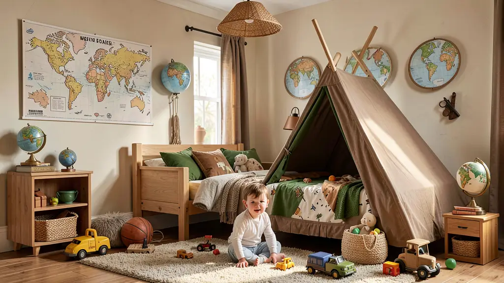 This theme grows beautifully with your child, evolving from toddler adventures to school-age geography interests and teenage travel dreams.