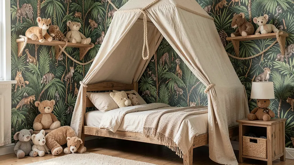Pro tip: Create a “watering hole” reading corner with blue accents and stuffed safari animals. It becomes an instant favorite hangout spot!