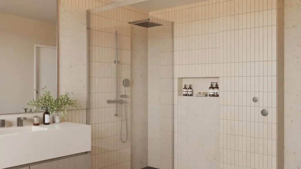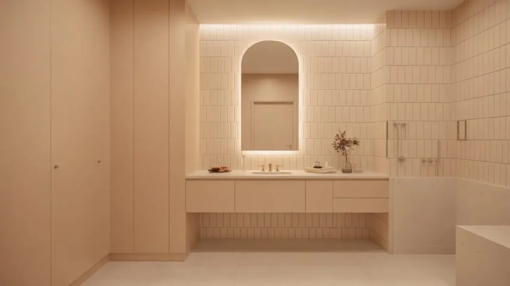 The trick to making beige feel modern and luxurious is to focus on a monochromatic palette and subtle textures. Using a warm, sandy beige tile in a vertical stack creates a soft, gentle rhythm that feels incredibly calming. The vertical orientation still gives you that lovely sense of height, but in a much softer way than a high-contrast look.