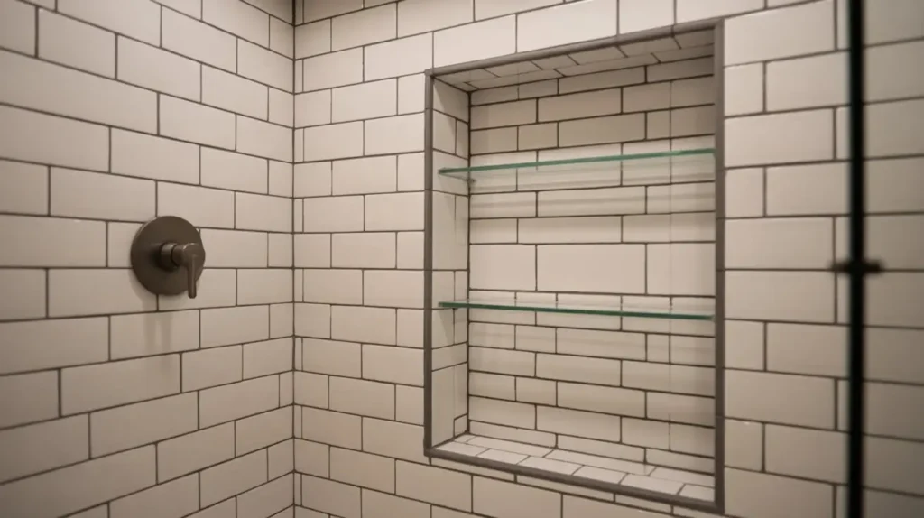 Let’s finish with a detail that’s small in scale but huge in impact: the shower niche. That little built-in shelf is a functional powerhouse, holding all your shampoos and soaps. But who says it can’t also be a major design moment? Using vertical tile in and around your niche is a pro move.
