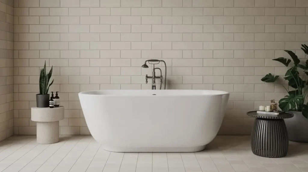 This look is particularly effective if you place the tub against a long wall. The tile provides a strong visual anchor and prevents the tub from feeling like it’s just floating in the middle of the room. You can choose a tile color that contrasts with the tub for a bold look, or a similar color for a more serene, seamless feel. Either way, you’re creating a focal point that is both dramatic and deeply inviting.