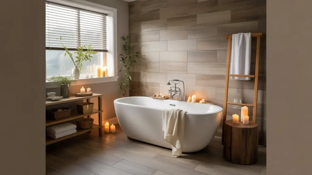 To double down on the cozy factor, bring in lots of soft textures. Think plush, fluffy towels, a soft bath mat, and maybe even a small wooden stool next to the tub. Warm, dimmable lighting is a must. You want to be able to turn down the lights, light a candle, and just soak in the warmth of the room. It’s simple, effective, and deeply comforting.