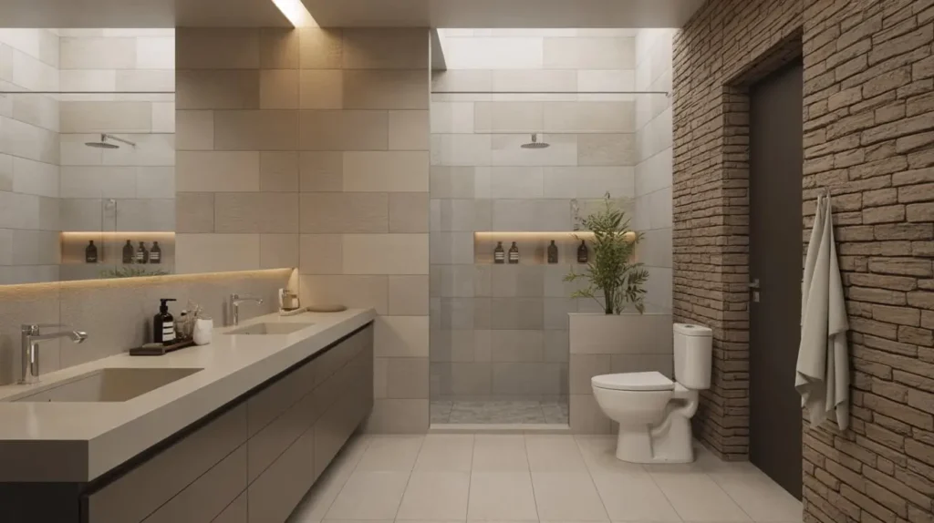 • Accent Lighting: Think about adding a small spotlight on the tile wall or LED strip lighting under a floating vanity.