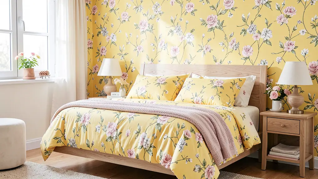 If you love bringing the outdoors in, a yellow floral bedroom might be your dream setup. There’s something incredibly romantic and fresh about combining yellow with floral patterns—it feels like spring decided to move into your bedroom permanently.