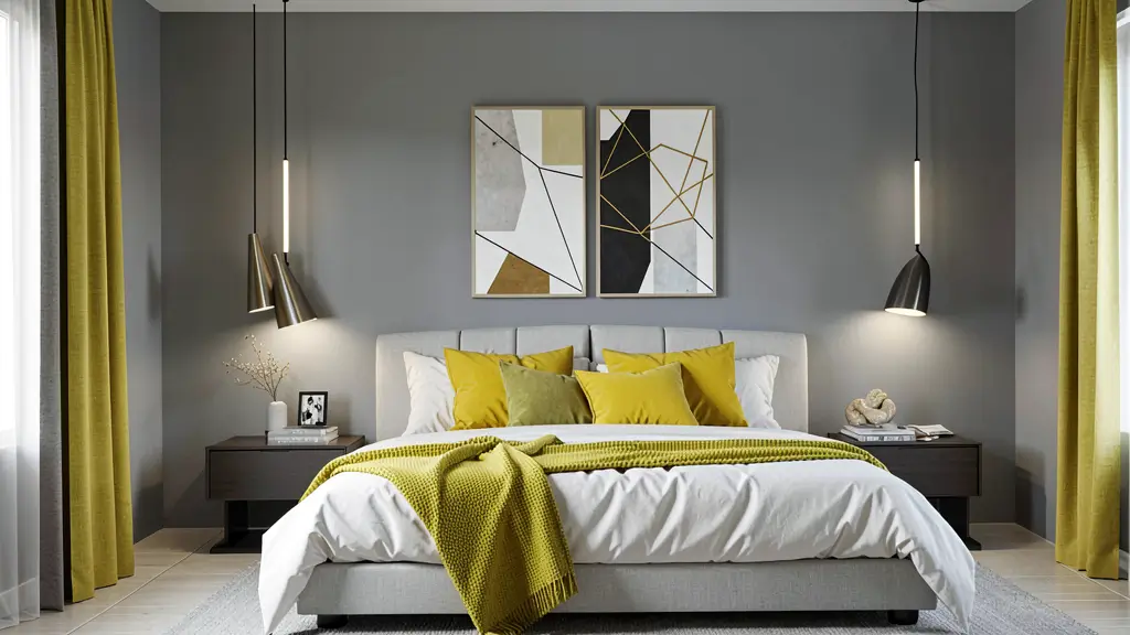Yellow and Gray Modern Bedroom